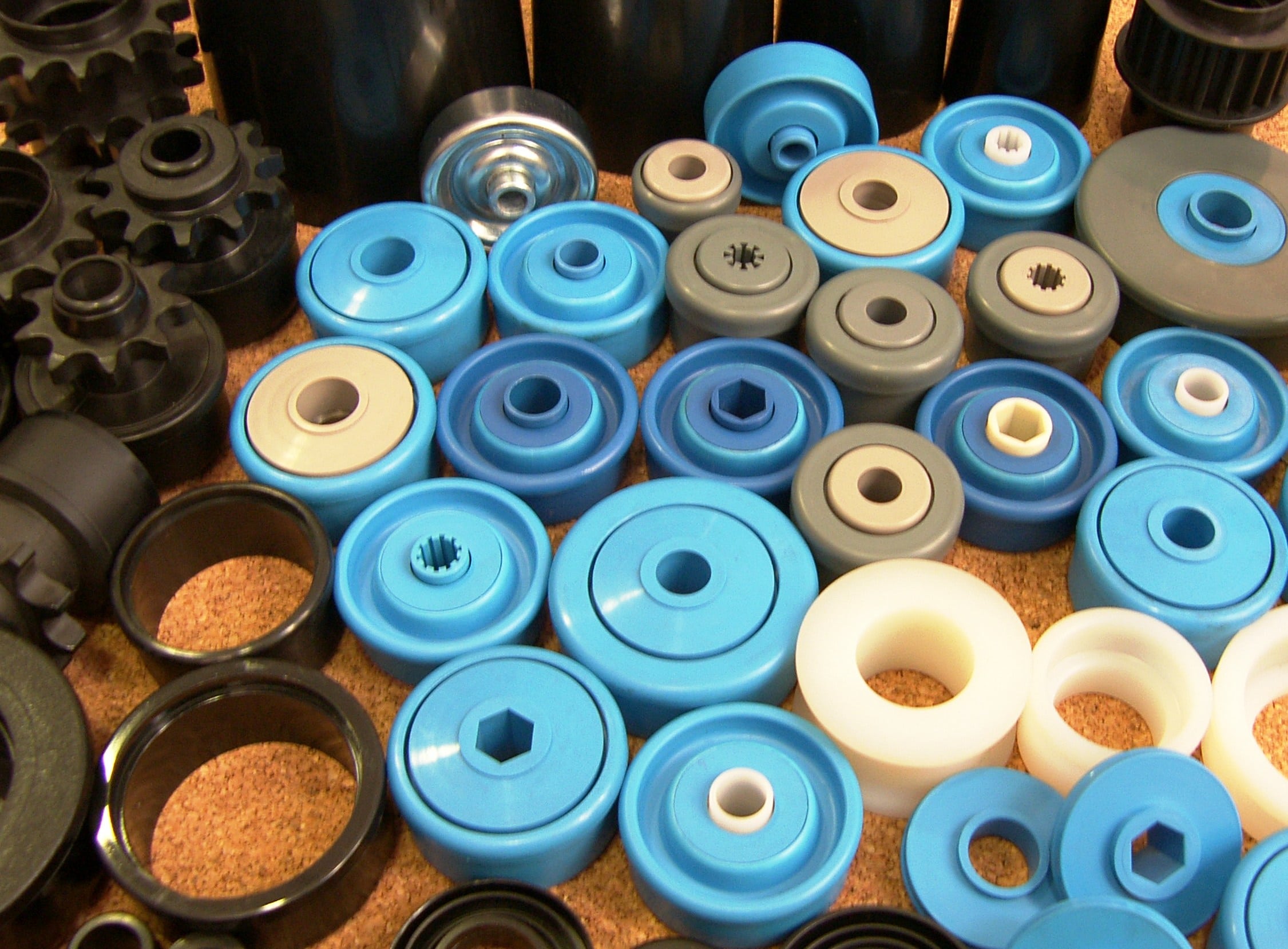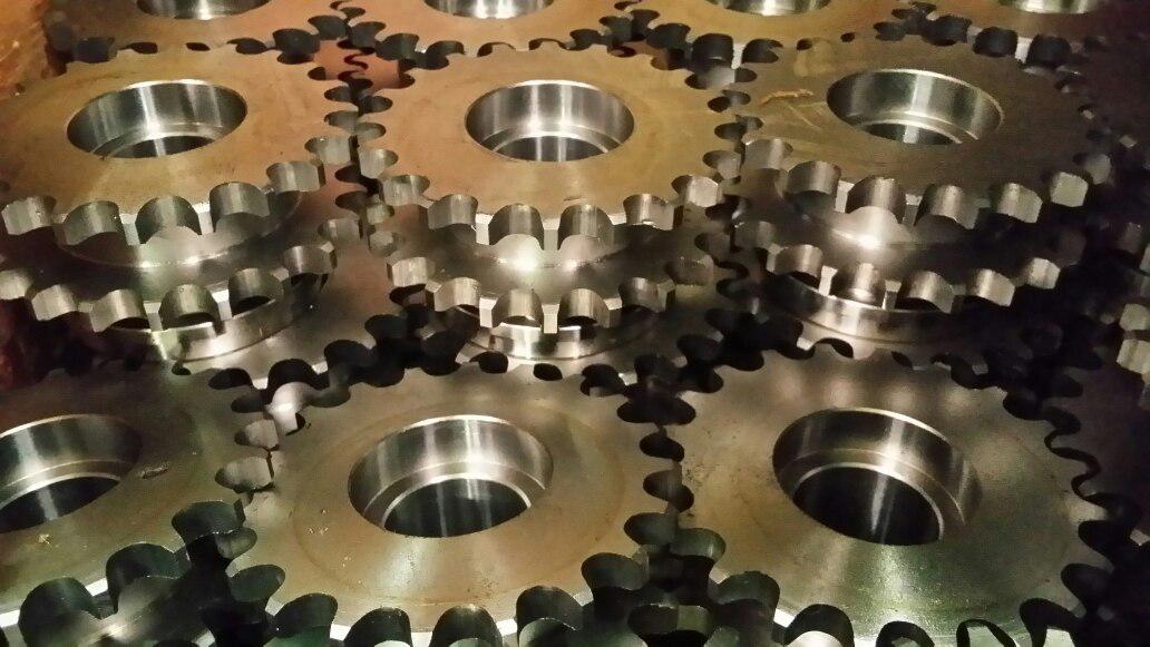 Pignons métalliques en acier au carbone ou en acier inoxydable. Une large gamme de couronnes simples, doubles ou triples pour des chaînes de pas différents. Ils peuvent être destinés à un clouage spécifique dans des douilles thermoplastiques pour la construction de rouleaux fixes ou à friction/accumulation ou munis de brides à souder directement sur le tube du rouleau. Possibilités de denture infinies en termes de nombre de dents et de pas. Ainsi que différentes douilles pour roulements, selon l’axe souhaité.